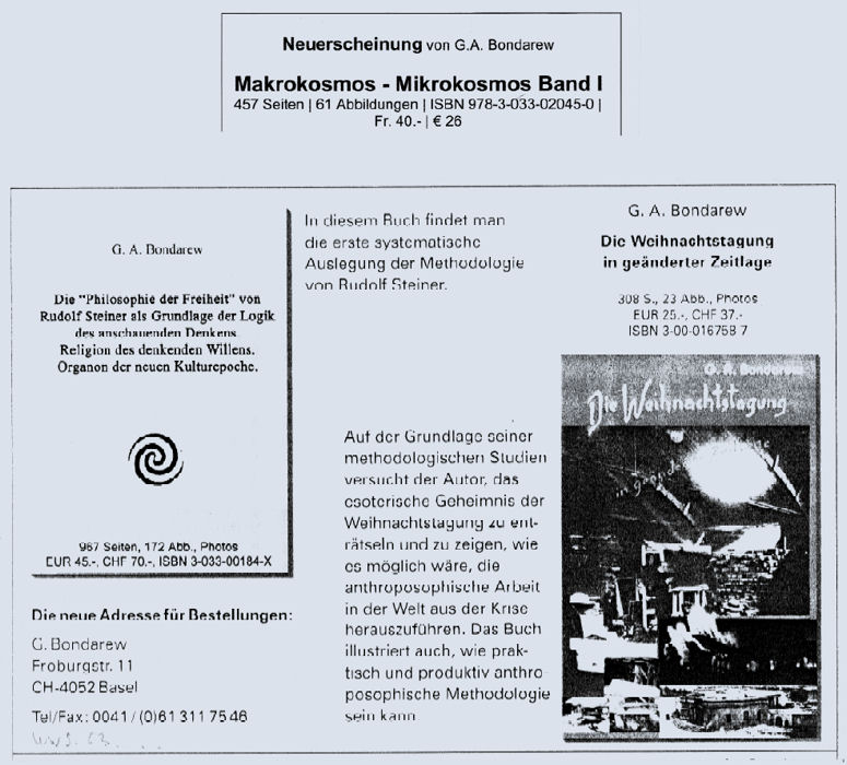 G. A. Bondarew - Die „Philosophie der Freiheit“ von Rudolf Steiner als Grundlage der Logik des anschauenden Denkens. Religion des denkenden Willens. Organon der neuen Kulturepoche.
